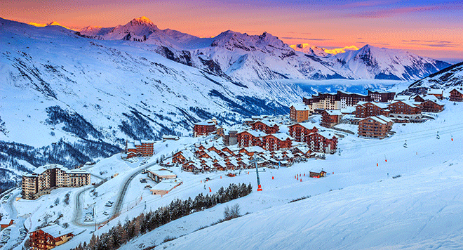 For a more affordable resort in Les Trois Vallées, Les Menuires is your best bet. The high altitudes and ski in-ski out make this resort extremely attractive, in addition to the well-connected network of chairlifts which can transport you to other resorts, like Meribel or Val Thorens with ease.