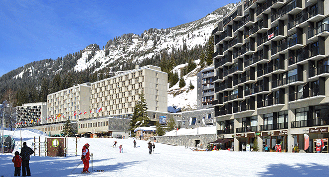 Much like Les Carroz, Samoens is one of the more family friendly resorts. Being a heritage-listed ancestral town, Samoens brings culture and history alive in its buildings, sculptures, and the spectacular surrounding nature. With the slopes being tree-lined andlong, this makes skiing in bad weather no issue at all!
