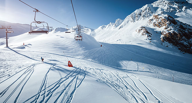 Settled east of Switzerland in the Engadin valley, Samnaun is a small but special resort tucked away from the masses. This remarkable town just 1.5 hours from the airport is rich in authentic Swiss culture, has some of the world’s most reliable snow, and happens to be the only duty-free village in Switzerland. Samnaun also shares the Silvretta ski area along with Ischgl in Austria, meaning you can easily ski between the two countries!